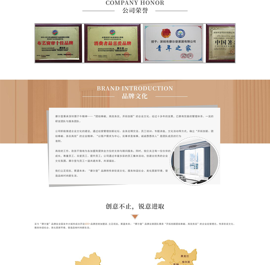深圳市摩尔登家居有限公司致力打造中国高端窗帘匠心品牌。聚焦旗袍之美,让窗帘工艺以旗袍工艺为标杆,围绕其所承载的服饰美学和文化价值,从古老东方文化中的造物观念与手工造诣中汲取精华,不断创新,推出窗帘旗袍出芽工艺、滚边工艺、美缝工艺等精湛工艺,馥郁浪漫,与美共生。